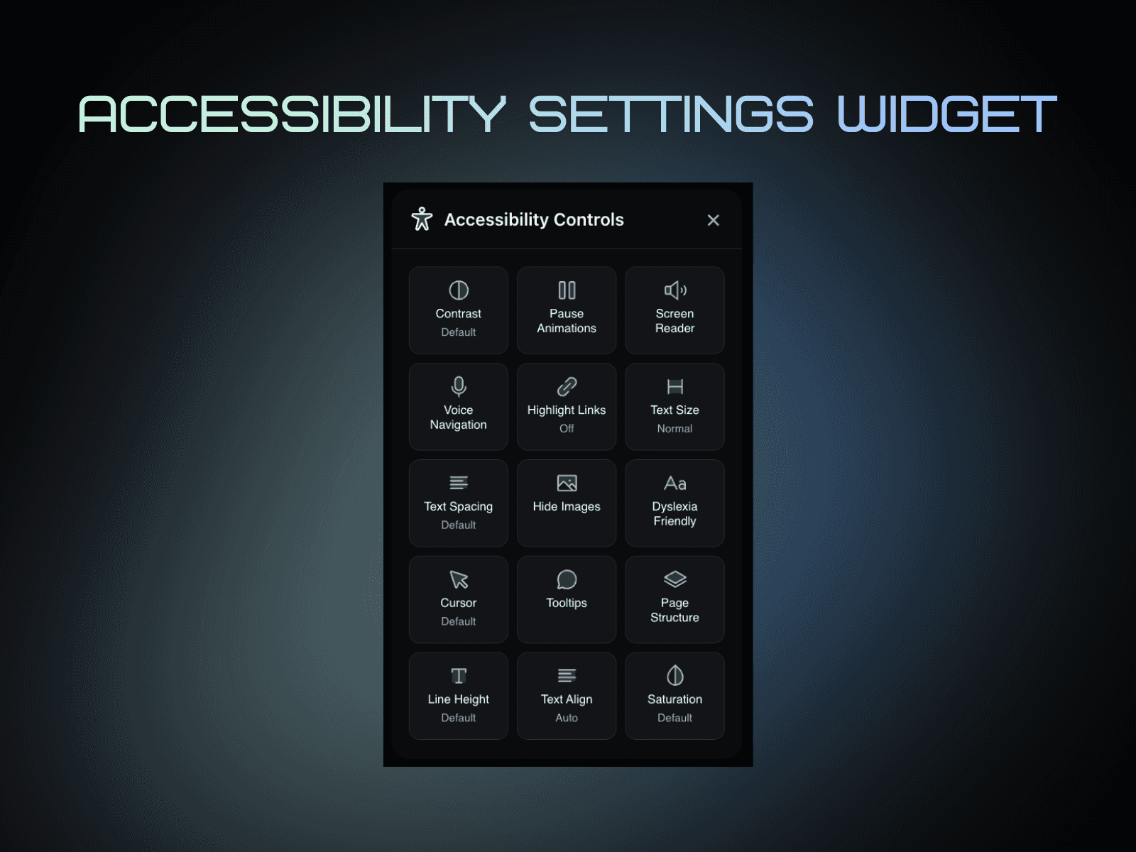 Adds an on-page button/control that opens an Accessibility Settings popup